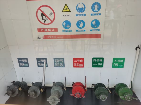 加油區設置加油罩棚,罩棚下設置4臺三油品六槍潛油式加油機(汽油)和2臺雙油品雙槍加油機(柴油);埋地罐區設有5FF雙層承重油罐,其中30m3汽油罐330m3柴油罐2只,折算后油罐總容積120m3(柴油罐折半計入),根據《汽車加油加氣加氫站技術標準》GB50156-2021的相關規定,該站屬于級加油站。加油站已安裝汽油卸油和加油油氣回收系統。